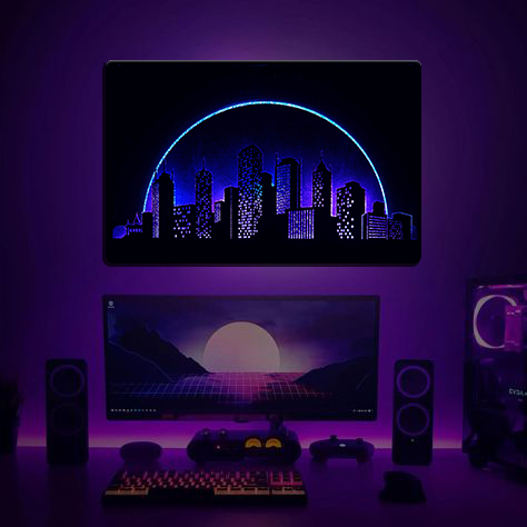 Verwandeln Sie Ihre Wände mit unserem atemberaubenden beleuchteten Kunstwerk mit dreilagigem 3D-Design und intelligenter LED-Beleuchtung, die über die Magic Home App gesteuert wird.